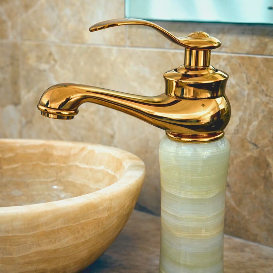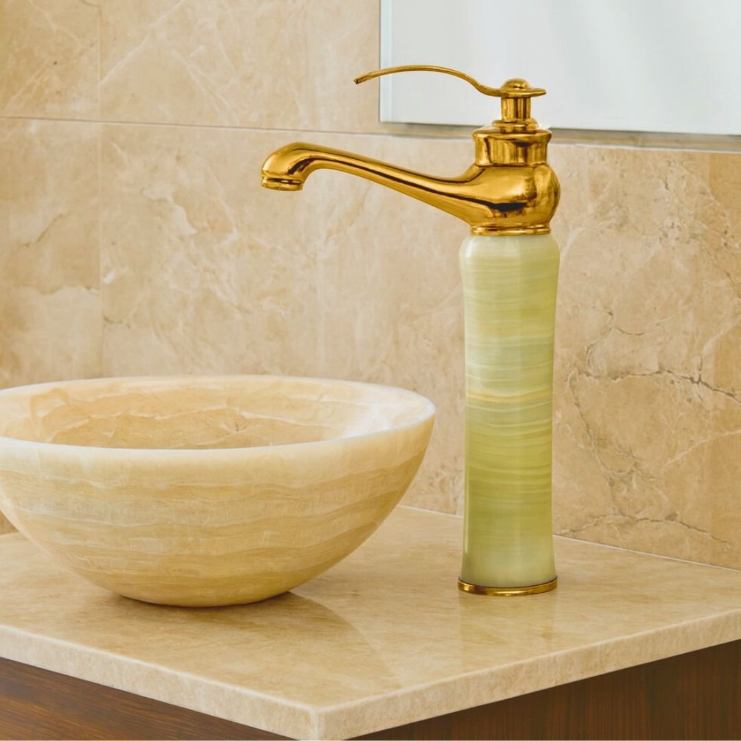 Mitigeur Haut pour Vasque avec Base en Onyx Naturel.
