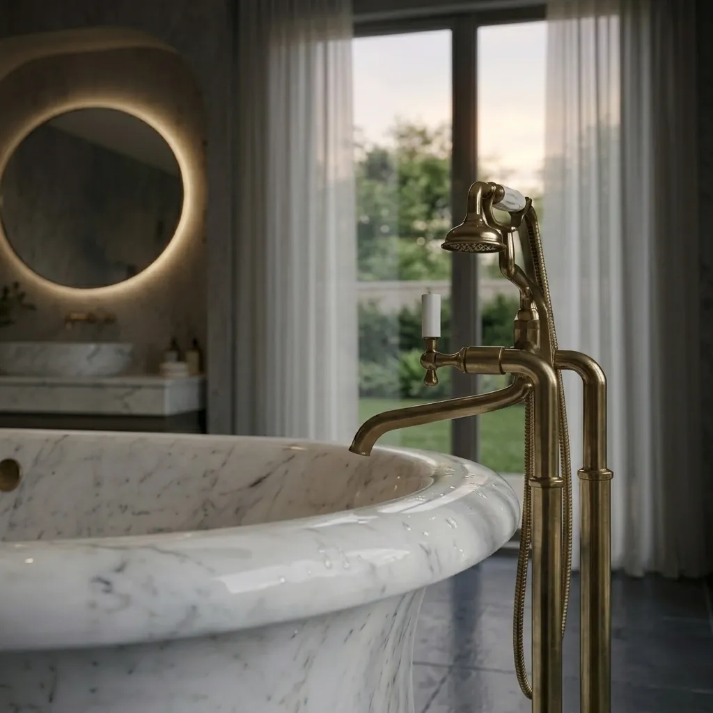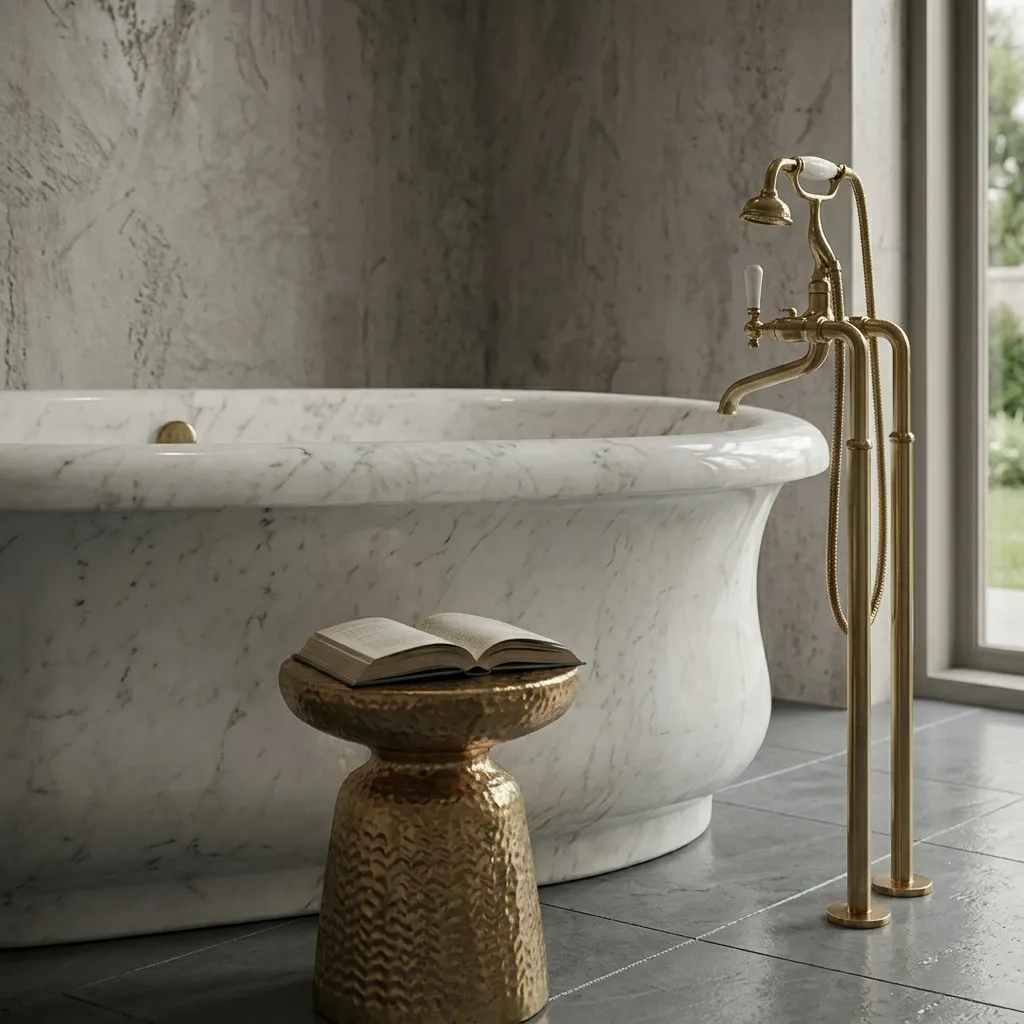 Una bañera de mármol ofrece mayor durabilidad, estética superior y una sensación de lujo natural. Además, su apariencia elegante y su material noble aportan valor visual y funcional al baño.