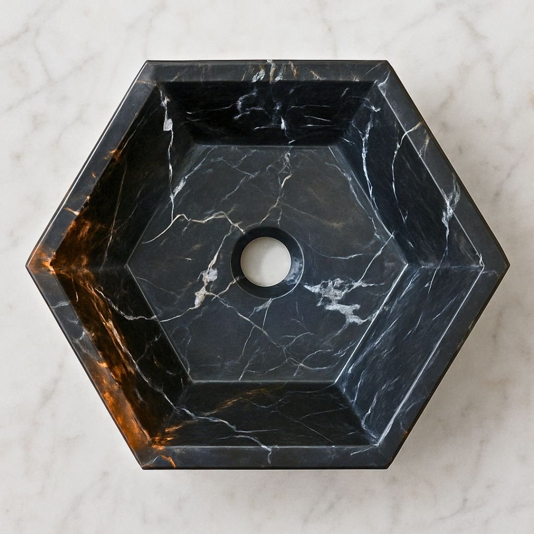 Lavabo de diseño hexagonal moderno en mármol negro
