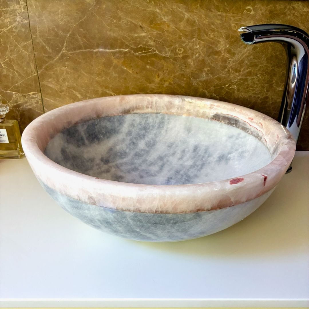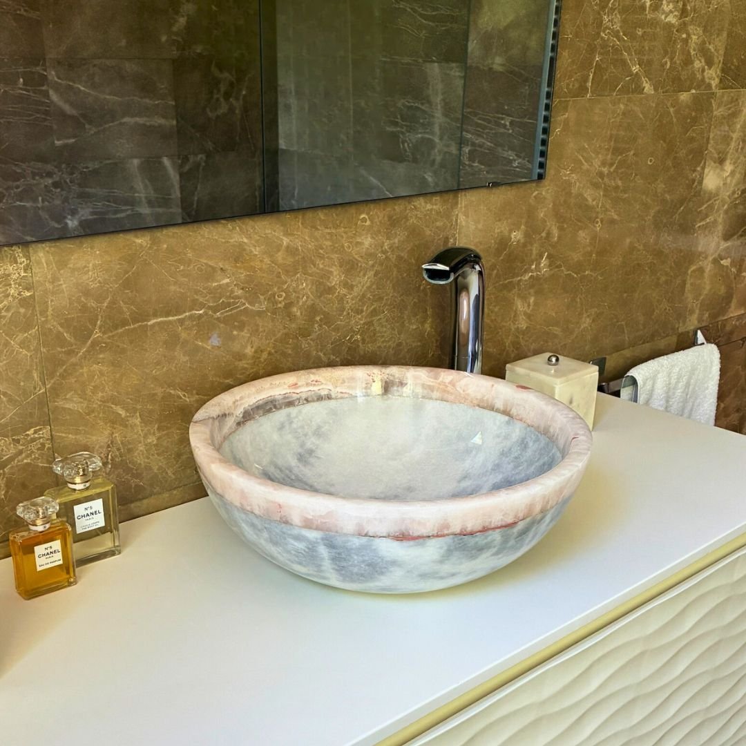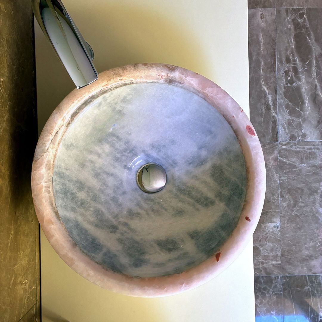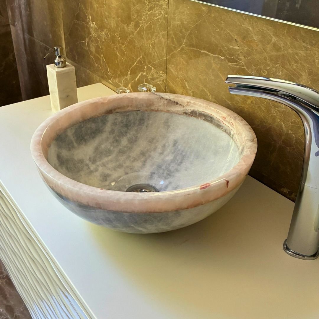 Lavabo de piedra natural blanco y onix rosa