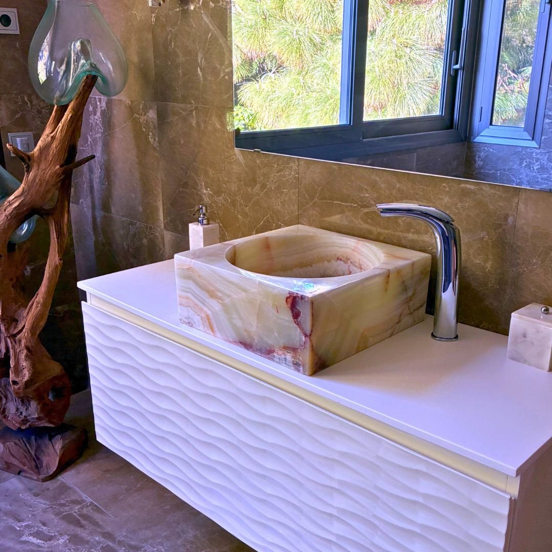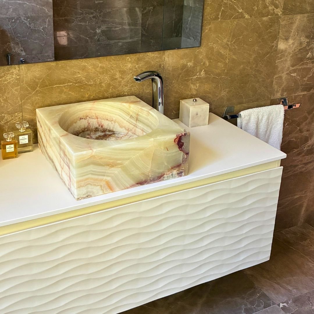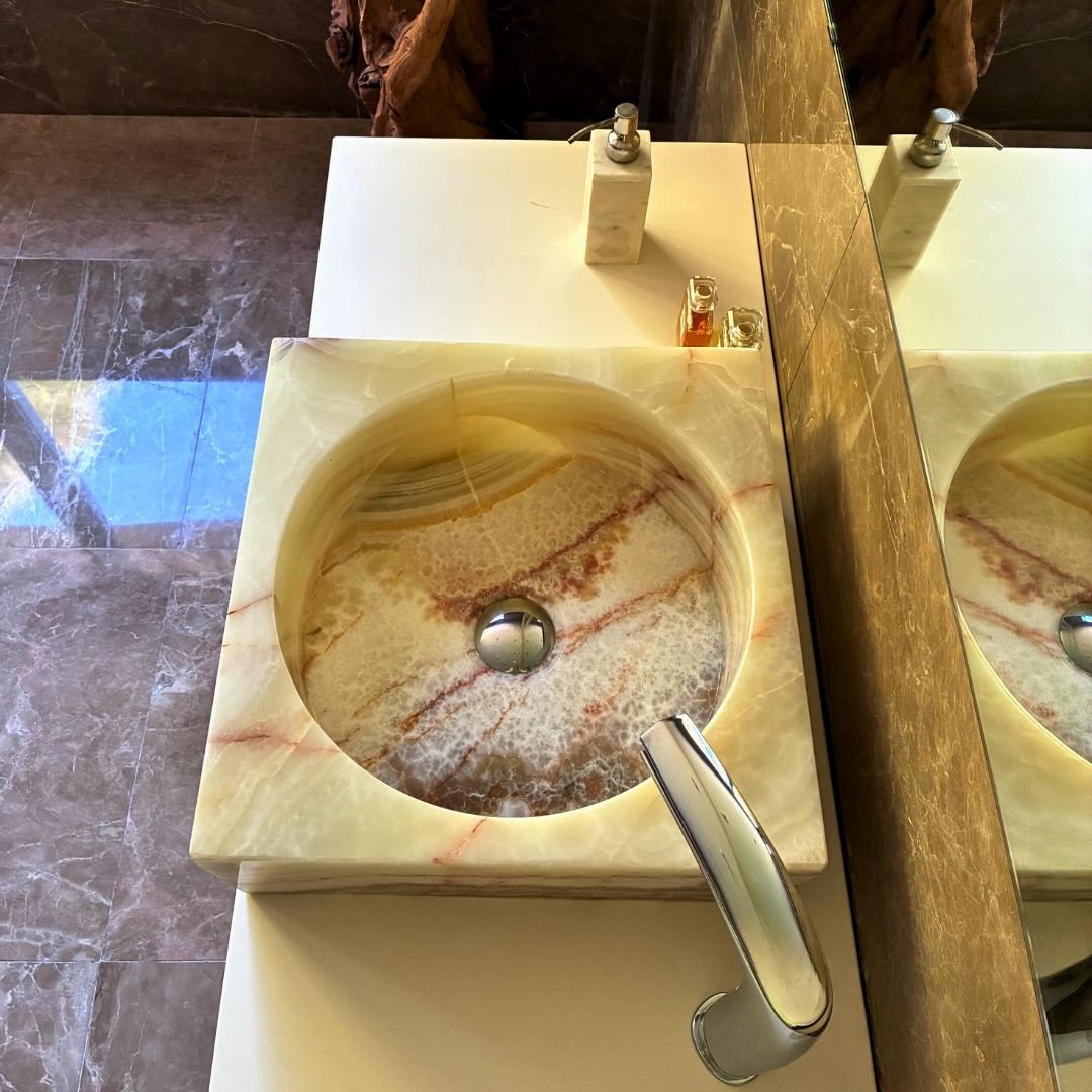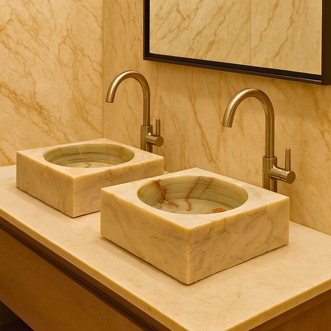 Fyrkantigt handfat i sten onyx för stilrent badrum